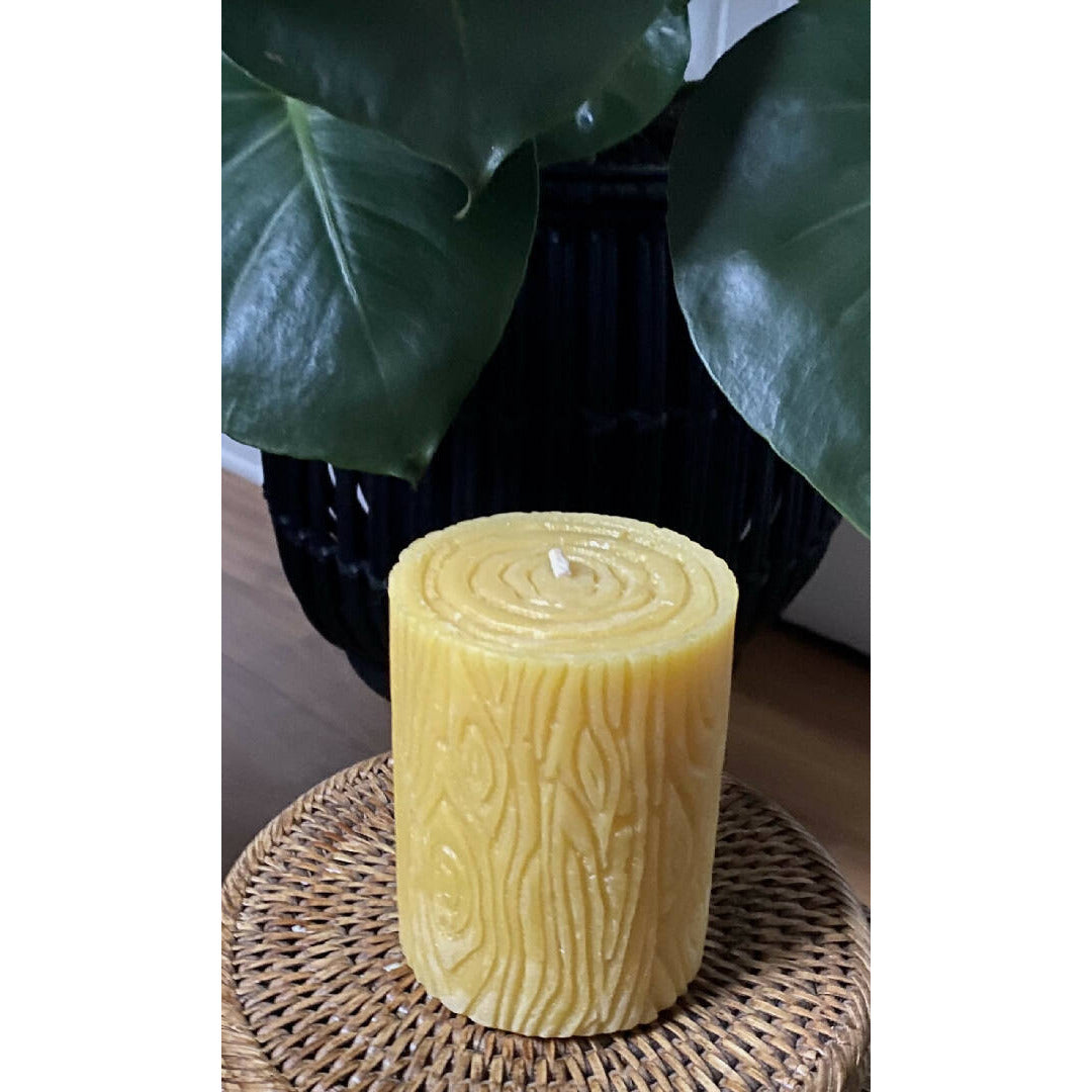 Hermosa Vela Artística de Cera de Abeja – Madera