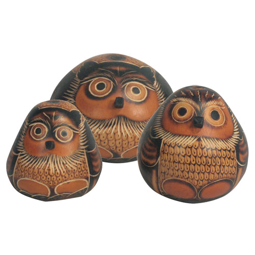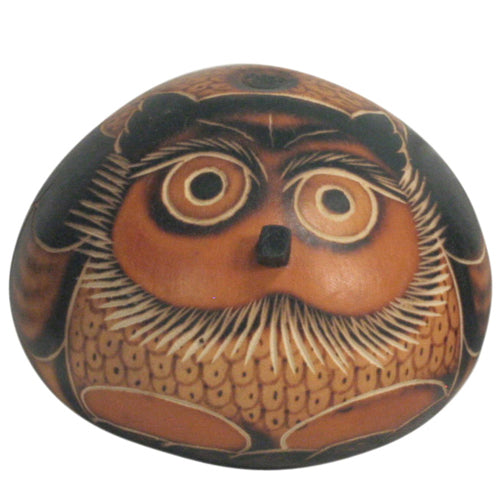 Calabazas Búhos Sentadas Talladas a Mano por Artesanos de Perú
