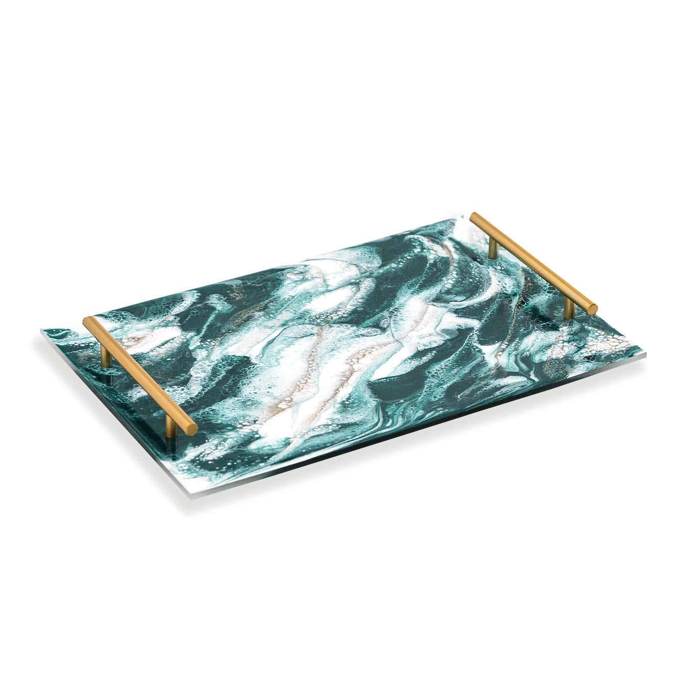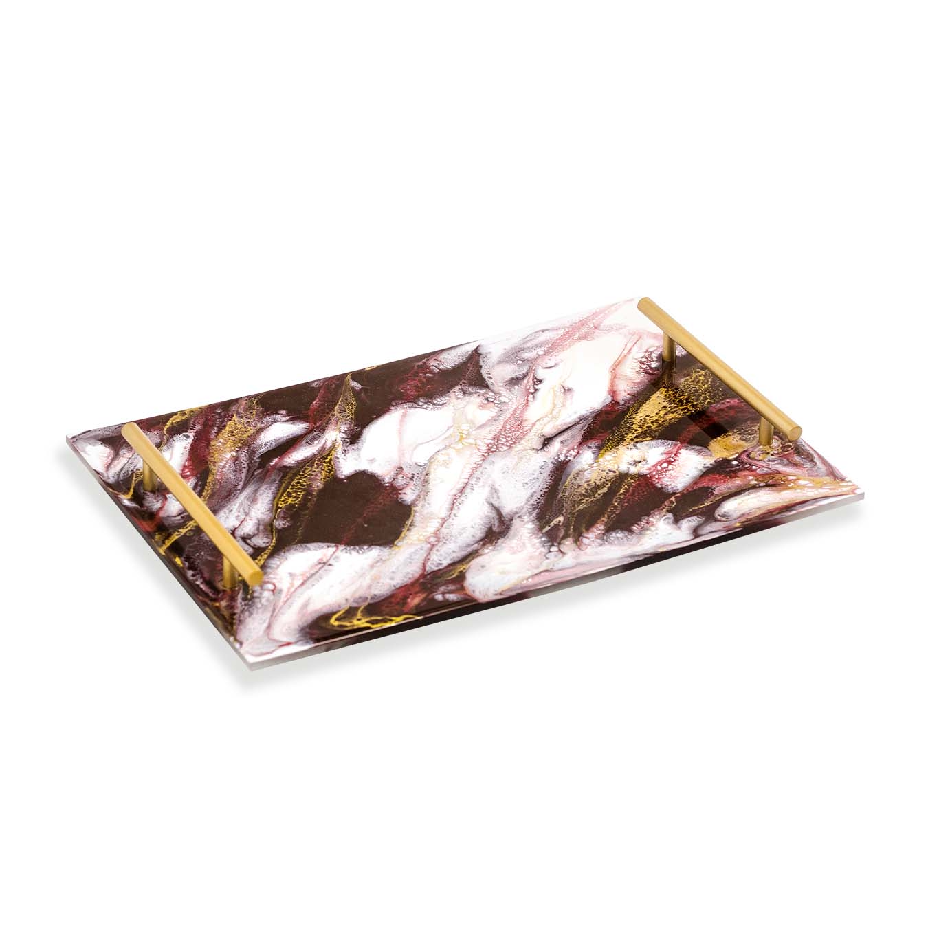 ¡Sorprenda a sus invitados con una de nuestras impresionantes bandejas de lucita! ¡Nuestras bandejas para servir son el soporte perfecto para el desayuno en la cama, una charcutería desbordante con una hermosa sorpresa debajo o una hermosa pieza decorativa para su sala de estar o comedor! Su nueva bandeja será el punto focal de cualquier sala de nuestro evento. Mide 12" x 18" de diámetro y viene con manijas plateadas o doradas.