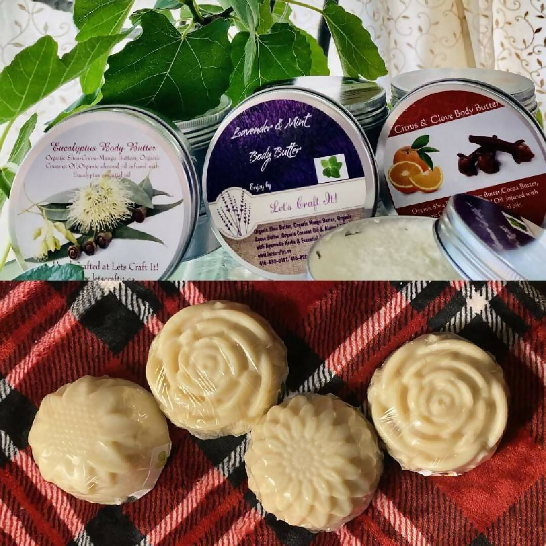 · L'ensemble comprend : 1 beurre corporel biologique et 1 savon biologique traité à froid