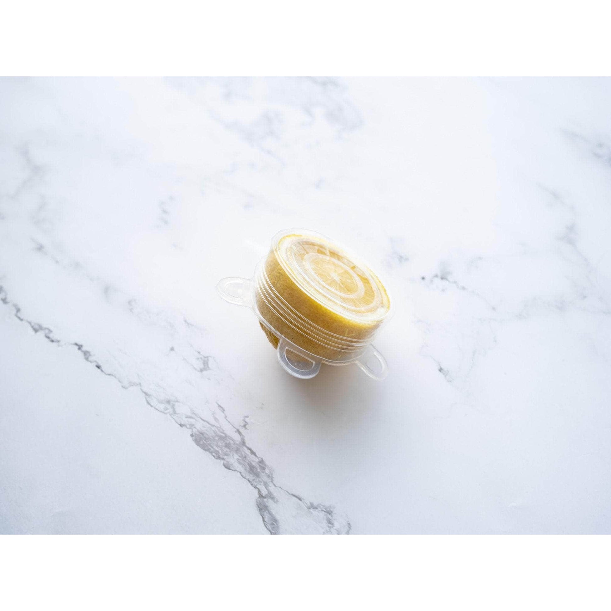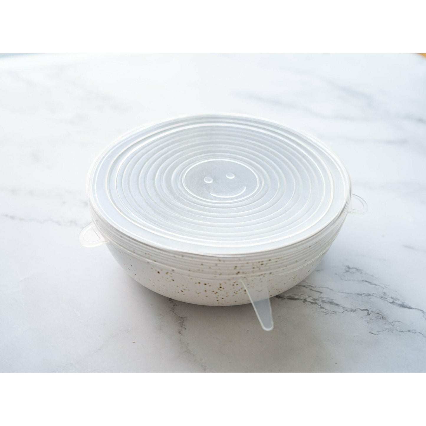 - 6 housses rondes transparentes en silicone sans BPA de différentes tailles :