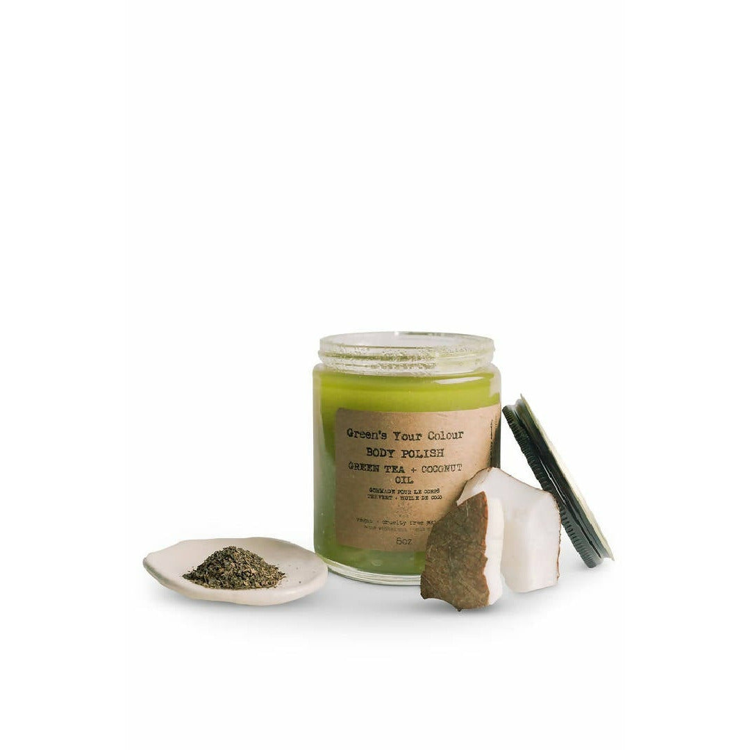 - Ingredients: Pure cane sugar, coconut oil, olive oil, lime oil, green tea powder