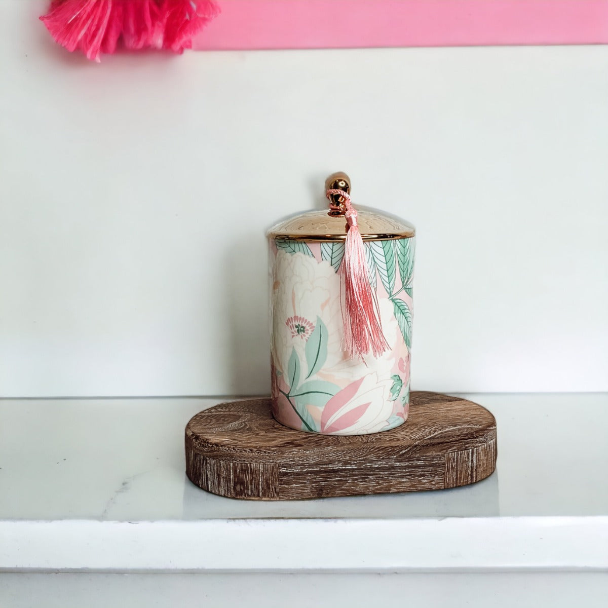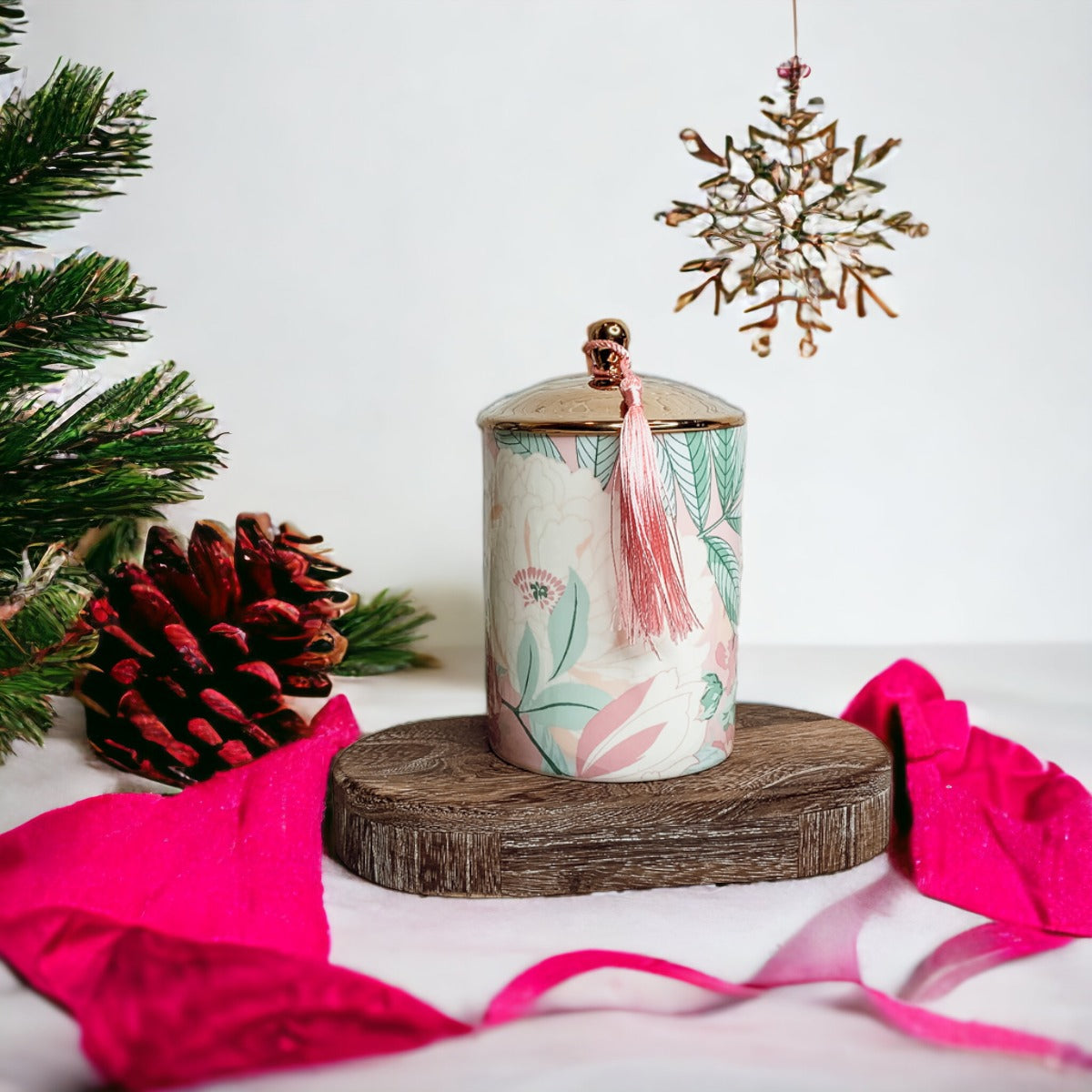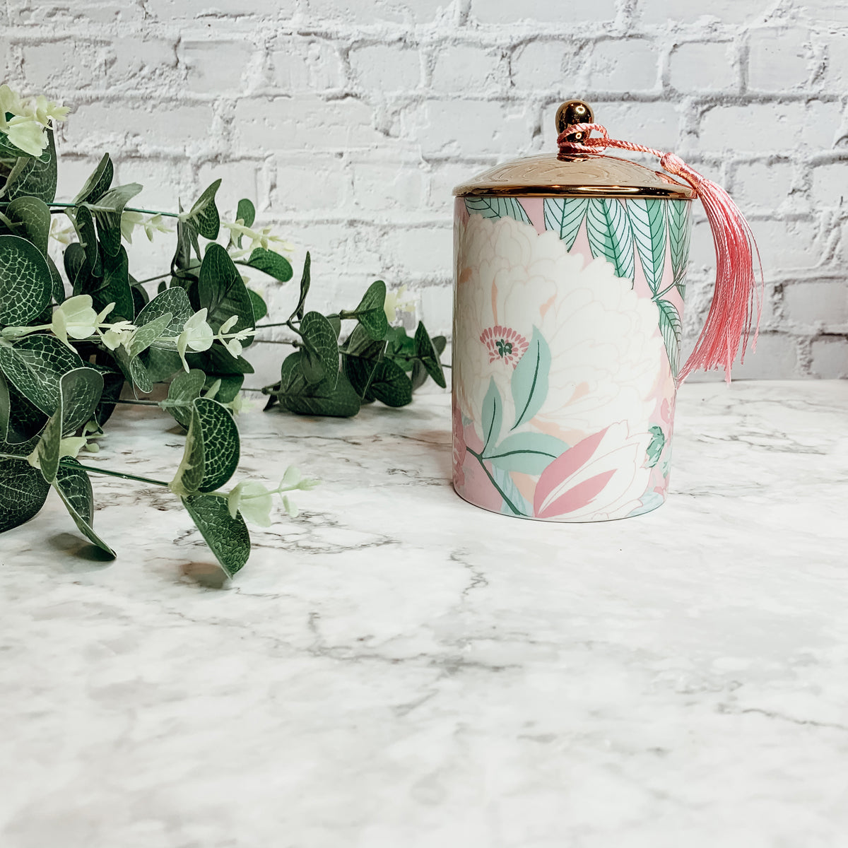 Experience the luxurious scent of our Vintage Floral Candle Set, complete with a metallic gold lid and gift box. After enjoying the candle, repurpose the beautiful container for storage or décor. This a a beautiful Mother’s Day gift or birthday gift.